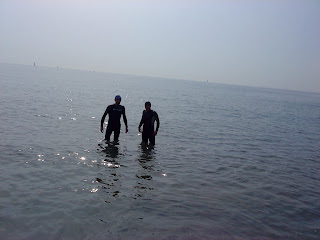 Com es habitual la platja de la Nova Mar Bella a Barcelona ve ser l escenari del primer bany d entrenament dels triatletes UAR,amb il·lusió per comprovar in situ l estat de forma i treure el neoprè després dels mesos d hivern.Entrenament curt,només per “provar”,però es van fer uns mil metres,la temperatura d l aigua encara es bastant freda.L entrenament va servir per “matar el gusanillo” i a part per comprovar que els més ràpids d l any passat son els mateixos i els més lents també,però es nota l esforç del curset de natació d hivern i en general hi ha l idea que es millorarà i força les marques en natació de l any passat.Primers metres de natació en mar oberta d aquest any de la secció de triatló.