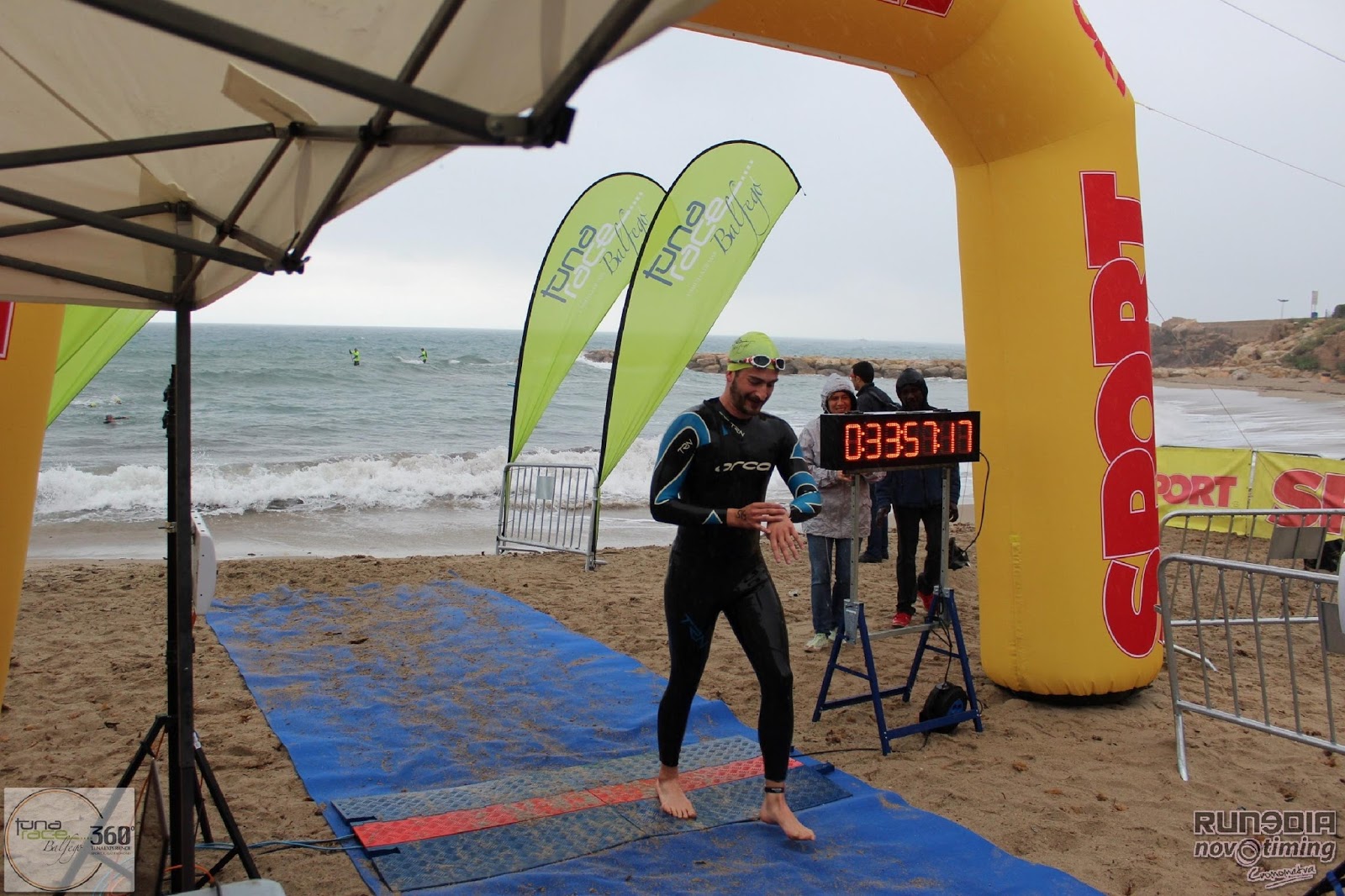 en el tramo de natación con bastante oleaje y el sector de bici con aire, pero